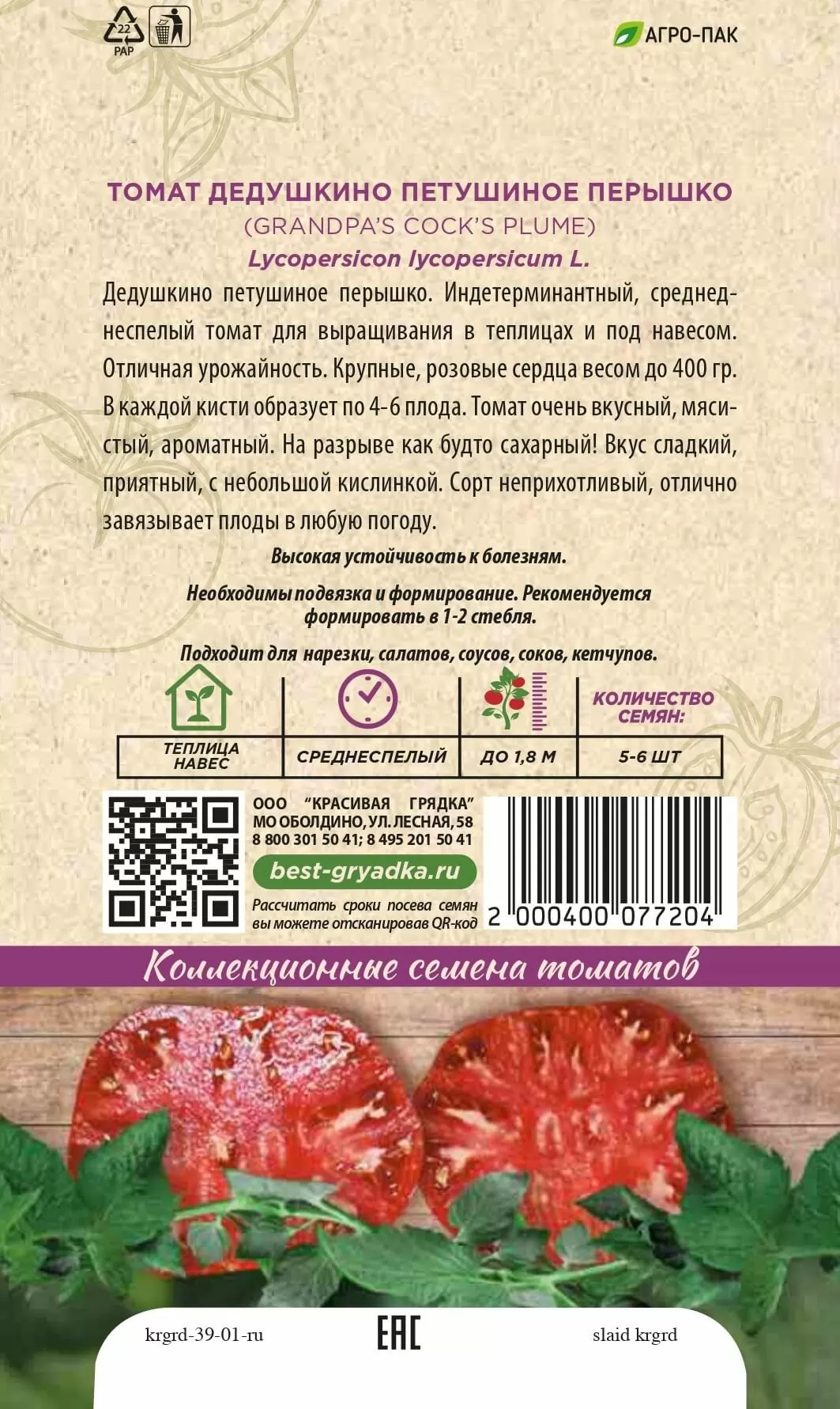 Томат Дедушкино петушиное перышко (Grandpa’s Coсk’s Plumе)