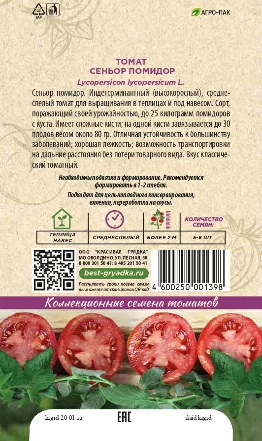 | Реквизиты | Товар, Запас, Розовый, Округлая, Теплица, Сорт, Среднеспелый, Красивая Грядка, Индетерминантные, Розовый, Округлая, Теплица, Сорт, Среднеспелый, Красивая Грядка, Индетерминантные |