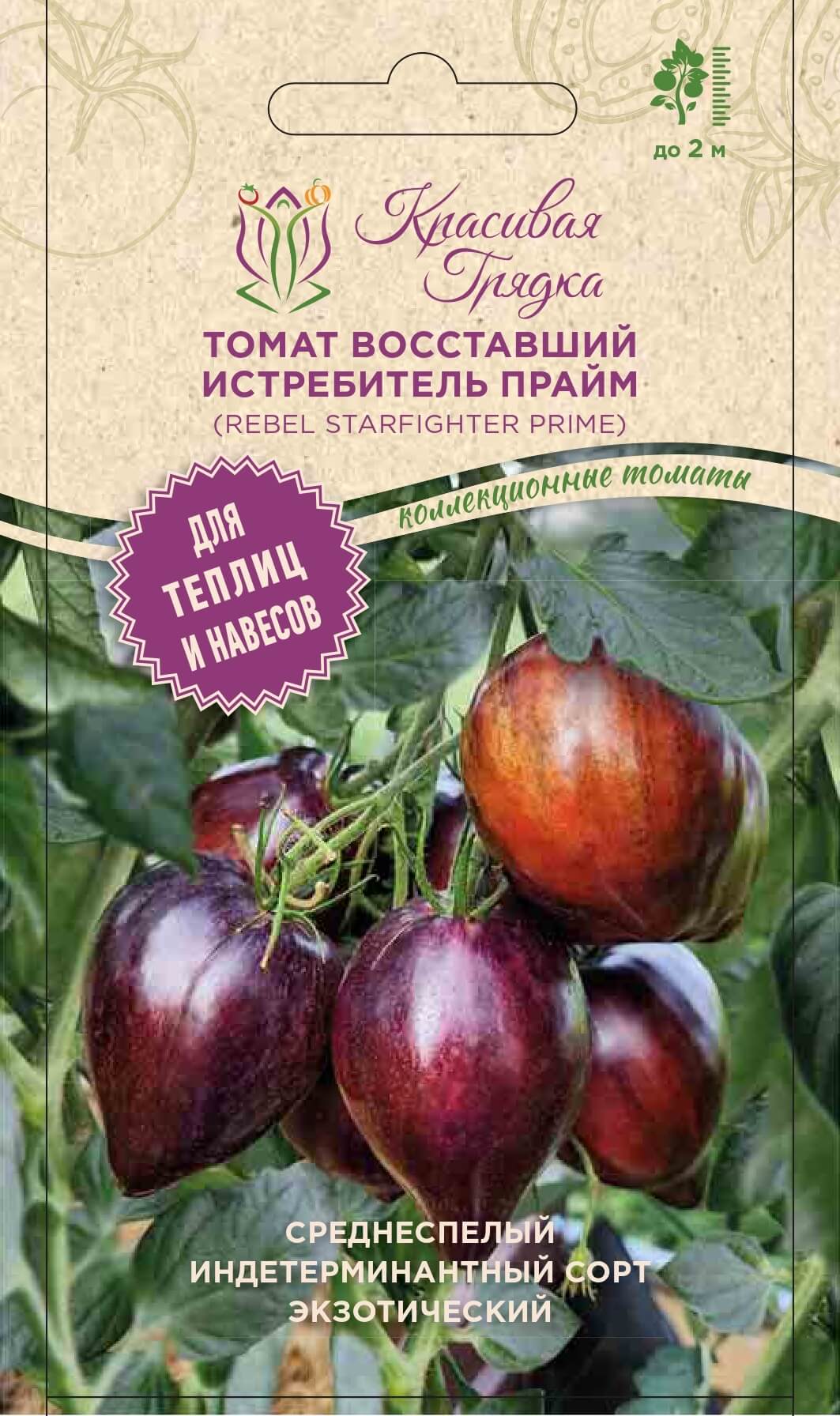 Сорт "Rebel Starfighter Prime". У этого томата много названий, это происходит из-за свободного перевода оригинального названия. Некоторые его называют Мятежник — Истребитель, другие — Повстанческий Ястреб, Восставший звездный Ястреб. Этот томат встречается также под названием — Томат Мятежный, Восставший Звездный истребитель, Истребитель Прайм, Истребитель ведущий, Повстанческий VT16 (зеленоплодный), Бунтарь звездолет. Новинка селекции от Расса Кроу, в результате скрещивания сортов Xanadu Picasso x RHK GWR Heart. Сорт из прибыл к нам из Америки. Плоды в виде сердца или стремящиеся к этой форме. Вес плодов от 150 до 300 гр. Окраска очень интересная, разноцветные замысловатые полоски и штрихи по всему плоду. Мякоть темно-красно-бордовая. Вкус у сорта замечательный, отлично сбалансированный, с ярко выраженной сладостью и сильным классическим томатным послевкусием. Аромат очень сильный. Отлично вяжет плоды в различных климатических условиях. Это натуральный сорт томата. Поэтому из зрелого плода рекомендуем взять семена и использовать их для посадки в следующих сезонах. Плодоношение длительное, продолжается до заморозков.