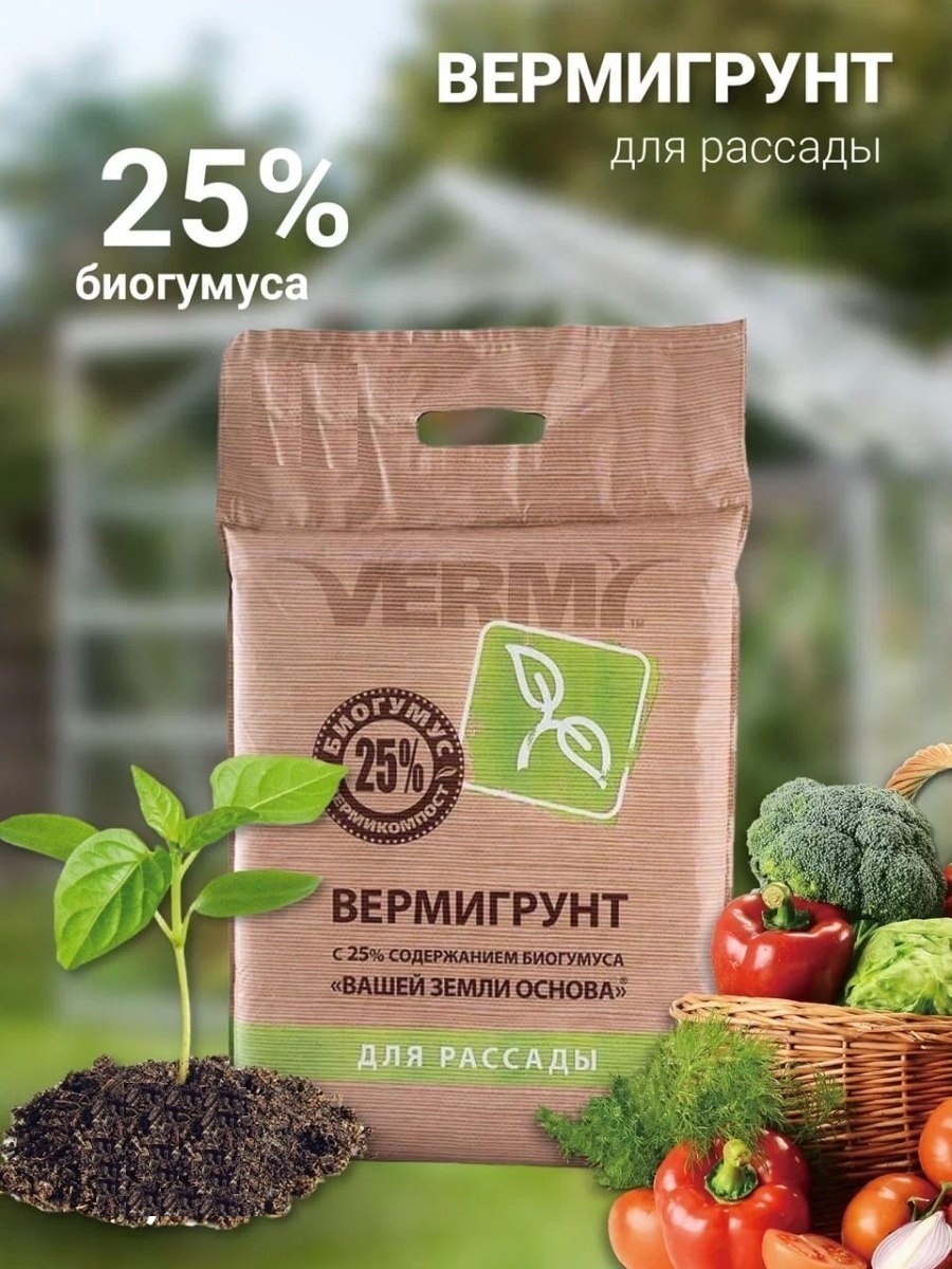 Полностью готовая к применению питательная почвосмесь с 25% содержанием ВЕРМИКОМПОСТА (БИОГУМУСА) «ВАШЕЙ ЗЕМЛИ ОСНОВА»® для выращивания широкого ассортимента овощных и зеленных культур, цветов, декоративно-лиственных деревьев и кустарников, а также для использования в ландшафтном озеленении при устройстве газонов, разбивке парков и бульваров.